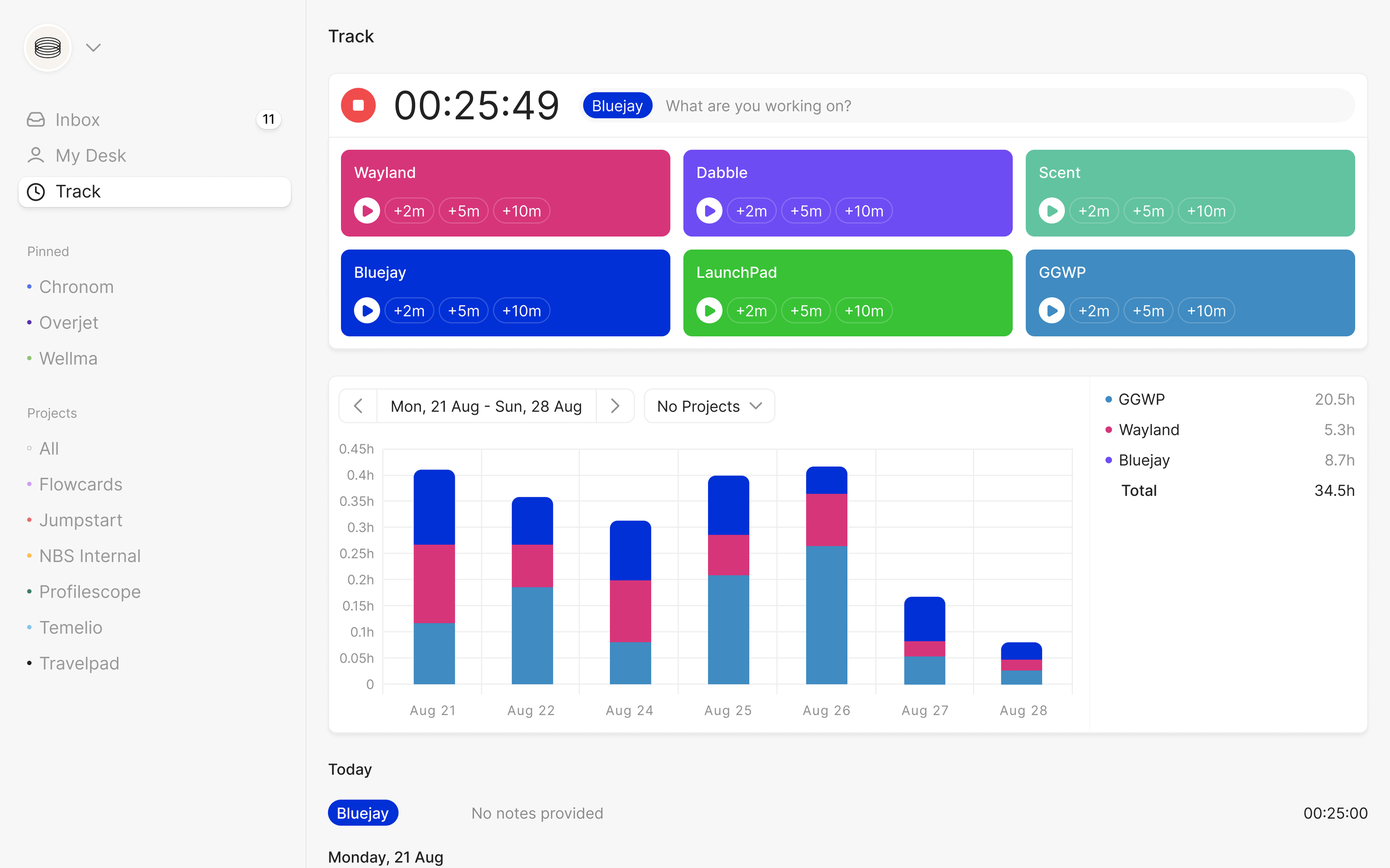 Granular time tracking built right in